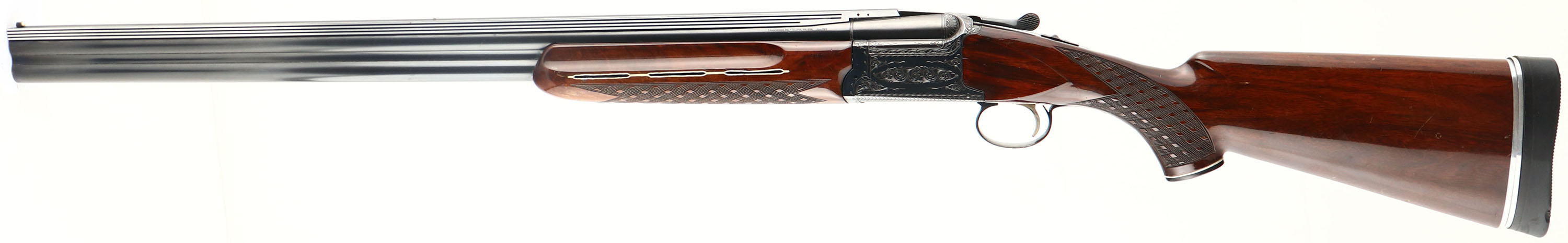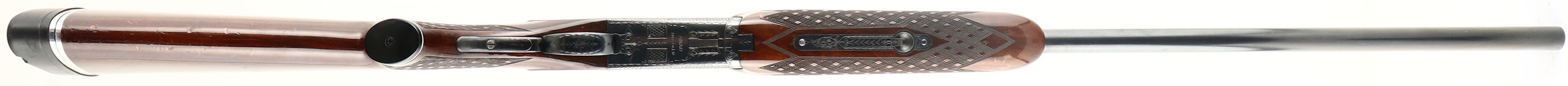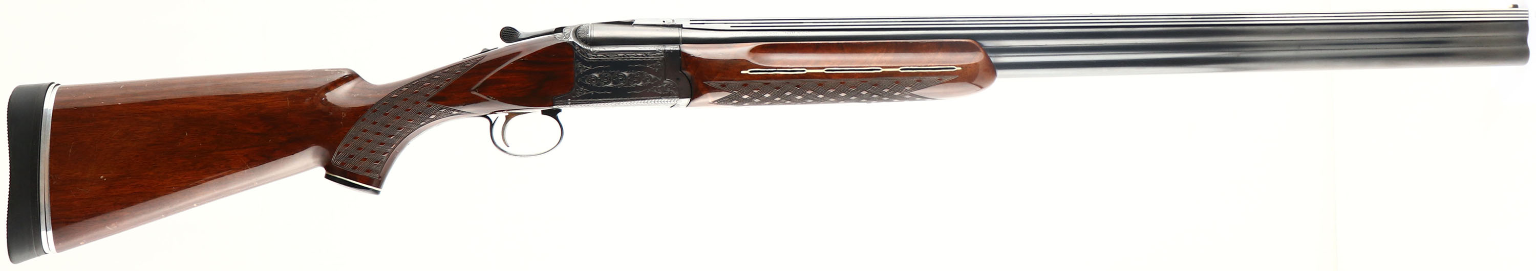 Nikko Arms Co. LTD, Model M-707 Shadow, CAL: 12 GA, MFG: 1971-72, SN: K700286, Break Action O/U Shotgun, Choke: IC/MOD, 2 3/4'', 29 3/4'' barrels with an extra wide aluminum rib. The m-707 is similar to the Winchester 101 O/U shotguns produced by them for Winchester. The sides & belly of the receiver display fantastic hand engraved scrolls & borders of simple ornamental patterns. The original checkered & capped pistol grip walnut stocks are excellent, displaying several minor handling blemishes, scratches & contusions to the wood & original high gloss finish. The hand skip-line checkering is excellent. The original metal blue finish rates 95% overall. Bores are excellent. The unique rib holds a small silver mid bead & a large white front bead. Single trigger. Buttstock carries a Kickeez adjustable solid rubber recoil pad. LOP: 14 1/4'' overpad. A fantastic looking O/U. FFL or C&R Req - Value: 600 to 1000