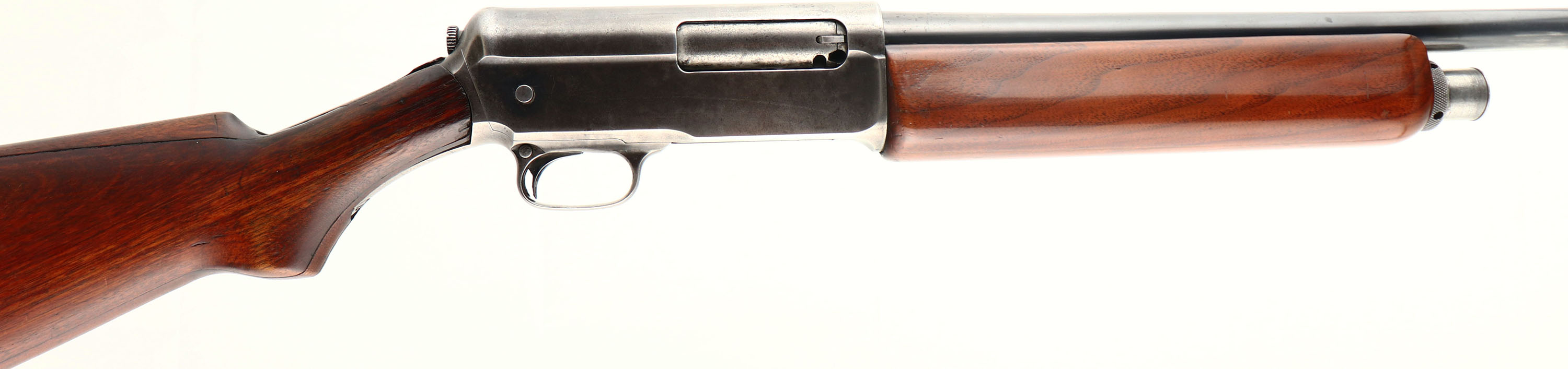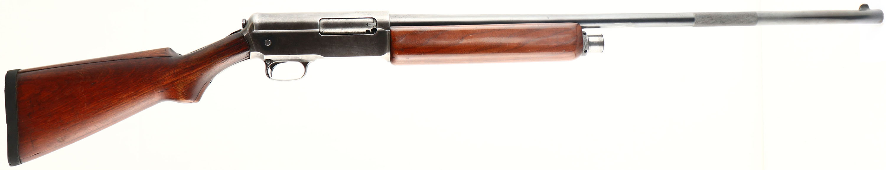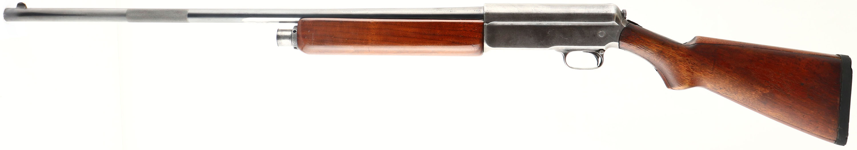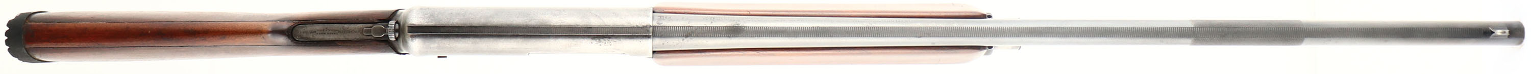 Winchester Model 1911 SL, CAL: 12 GA, MFG: 1911-25, SN: 14358, Semi-Auto Shotgun, Choke: F, 28'' matted barrel, with a matted grip feature on this model, which is used to help cock the shotgun. The original pistol grip laminated birch wood stocks are good & solid. The laminated sections & 3'' stress crack behind the lower tang all appear to be glue stabilized. There are minor scrapes, scratches & contusions to the stock, along with some small edge chipping where the stock meets the receiver. The stock carries the original worn finish, while the forearm appears to carry a nice refinish. The metal blue finish rates 70% on the barrel, while the receiver has worn mostly gun metal gray. There is a DL# & SS# electric pencil etched onto the lower tang. Bore is very good. The barrel is fitted with a blade front sight. The buttstock holds a solid rubber recoil pad. LOP: 14''. This is a fairly unusual model. FFL or C&R Req. - Value: 200 to 400