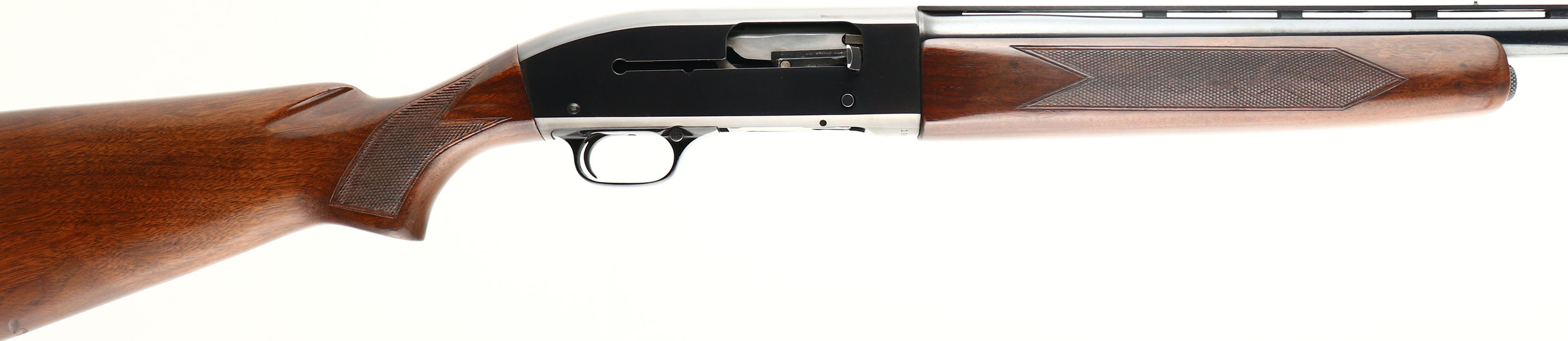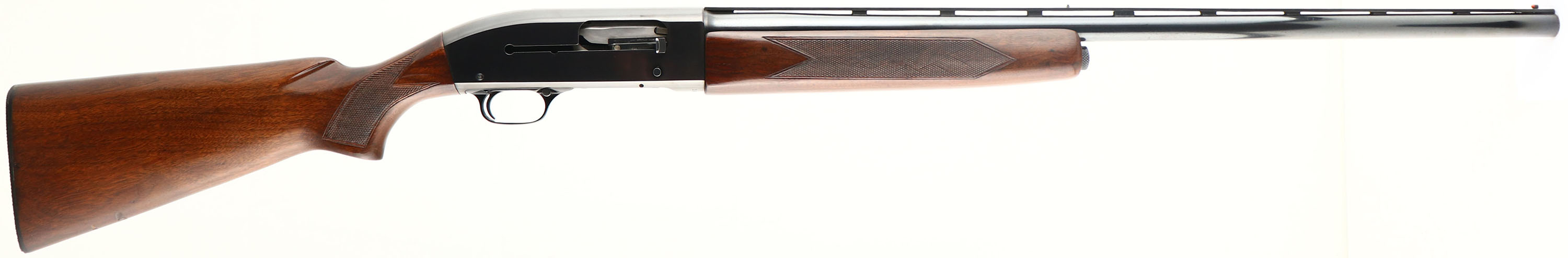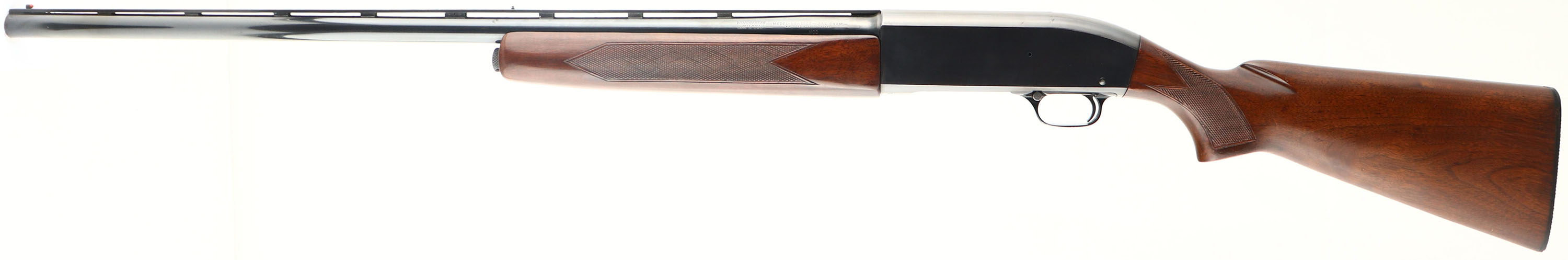 Winchester, Model 50, CAL: 12GA, MFG: 1958, SN: 55317, Semi-Auto Shotgun, 2 3/4'' chamber, MOD, 28'' Ventilated barrel. The original checkered & flat pistol grip wood stocks are excellent, with several minor to small contusions, scrapes & scuffs to the excellent original finish. The metal blue finish on the barrel & receiver rates 90%, with some spotting on the barrel. Bore is excellent. The barrel rib holds a mid & red front bead. Buttstock carries a Winchester plastic buttplate, LOP 13 7/8''. FFL or C&R Req. - Value: 300 to 500