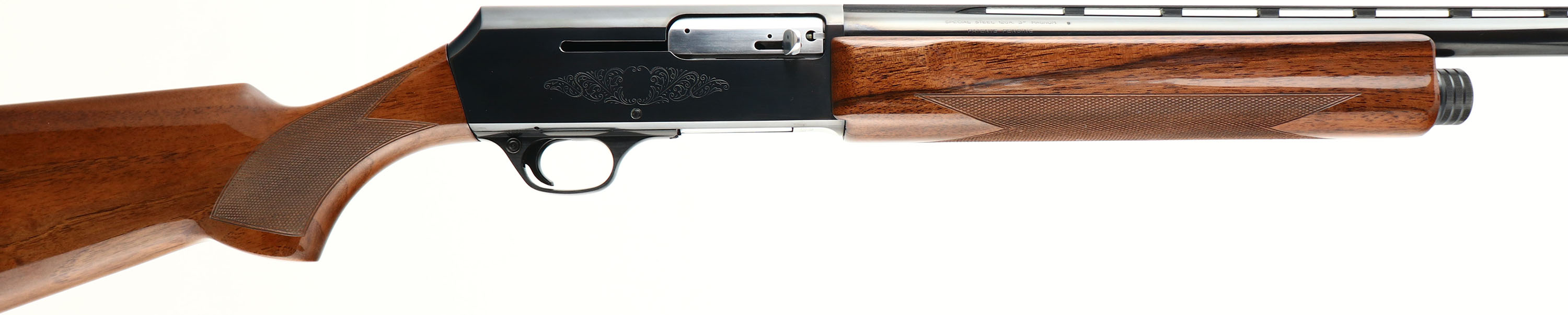 BROWNING, Model 2000 (B-2000), Two Barrel Set, 12 GA. MFG. 1979, SN: 611RN06578, Semi-Auto, Made in Belgium assembled in Portugal, Barrel 1: 3'', Full, 30'' ventilated ribbed barrel, Barrel 2: 2 3/4'', MOD, 28'' ventilated ribbed barrel, The original checkered & flat pistol grip walnut stocks are excellent. There are a couple tiny handling blemishes to the original glossy finish. The original metal black finishes rate 99% overall, on both barrels & receiver. Bores are excellent, Single front beads on ribs. Stock carries the FN Browning buttplate. LOP 14 1/4''. Excellent high original condition. FFL Req. - Value: 800 to 1200