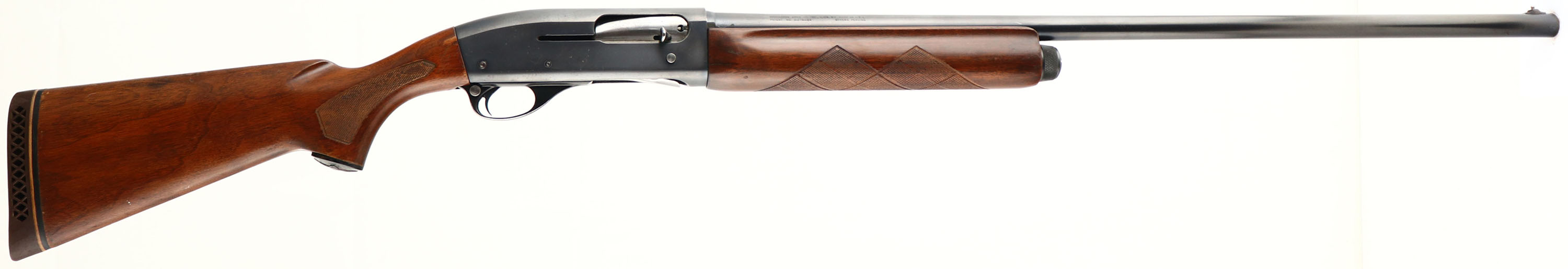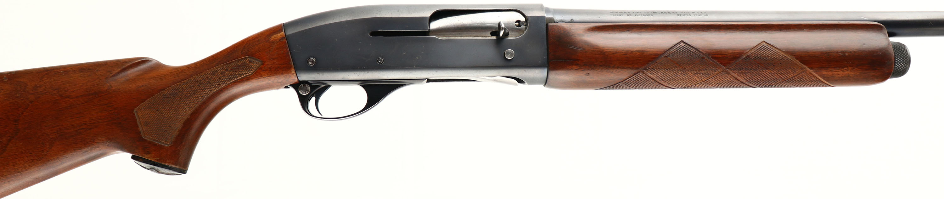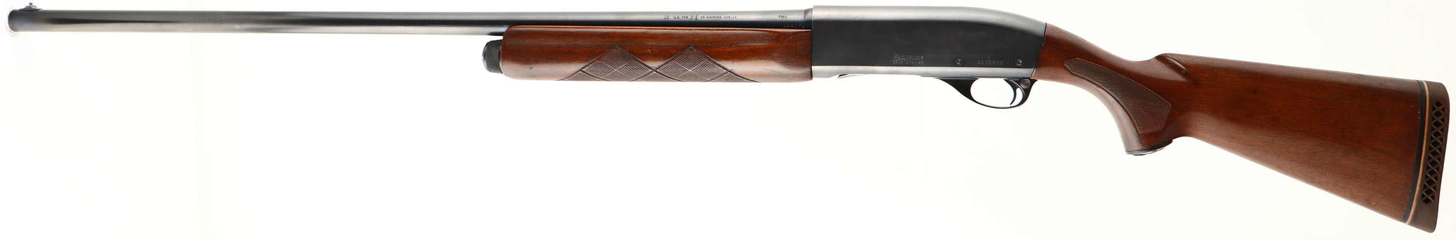 Remington UMC, Model 11-48, 12 GA., MFG. 1954, SN: 3112808, Semi-Auto Shotgun, FULL, 2 3/4'', 30'' barrel. The original checkered, capped pistol grip stock & beavertail forearm are very good. There are several minor to small scrapes, scratches & contusions to the original finish. The original metal blue finish rates 90% on the barrel, 80% on the receiver, with some spots & haze on the receiver. The top of the receiver has a wavy pattern for glare reduction, with the barrel having a silver front bead. Bore is excellent. The stock carries a ventilated recoil pad. LOP 13 7/8'' over pad. FFL or C&R Req. - Value: 250 to 450