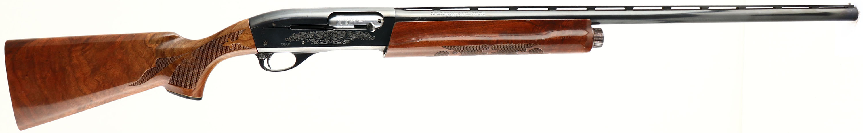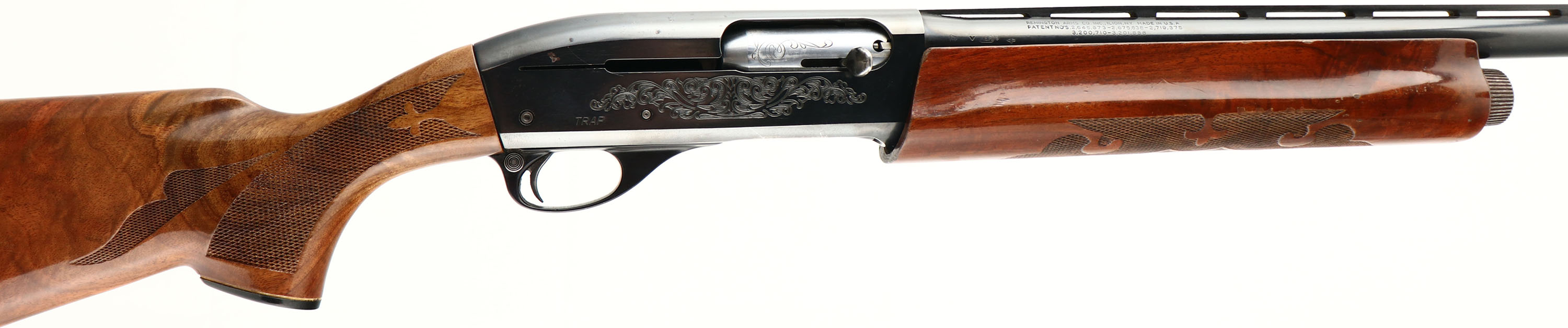 Remington, Model 1100, CAL: 12 GA, MFG: 1989, SN: N130965V, Semi Auto Shotgun, Choke: Full, 2 3/4'', 28'' Ventilated rib barrel. The original checkered & capped pistol grip wood stocks are very good, displaying numerous minor finish level scratches, scrapes & contusions to the original finish. The metal blue finish rates 90% on barrel, 85% on receiver, with a several small spots of loss on the top of the receiver & loading wear or scratches to the belly of the receiver. Bore is excellent & bright. The rib holds a single front bead. Buttstock is missing the recoil pad, LOP without pad is 13 3/8''. A high condition & light weight shotgun in a popular gauge for upland birds. FFL Req. - Value: 300 to 600