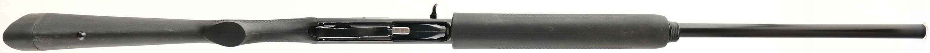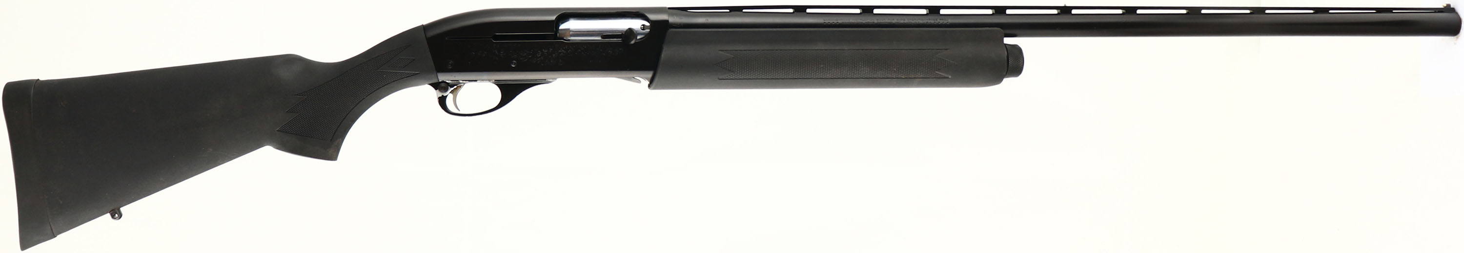 Remington Model 11-87 Premier, CAL: 12 GA, MFG: 1987-2000, SN: PC684873, Semi-Auto Shotgun, Choke: Screw-in choke tubes, currently MOD, 3'' Chamber, 27 5/8'' Matted ventilated rib barrel. The receiver has simple ornamental/floral roll stamp etching. The checkered & flat pistol grip synthetic stocks are excellent, displaying minor rubs. The barrel & receiver carry an added dark black spray on finish over the original finish, with some pit scarring under the finish. The finish rates 99%. The original Japan black finish on the trigger guard rates 80% with loss to edges & some flaking. Bore is excellent. Mid silver bead & white front bead on rib. The buttstock carries a factory Remington solid recoil pad. LOP: 13 3/4''. Sling stud in stock. FFL Req. - Value: 200 to 400
