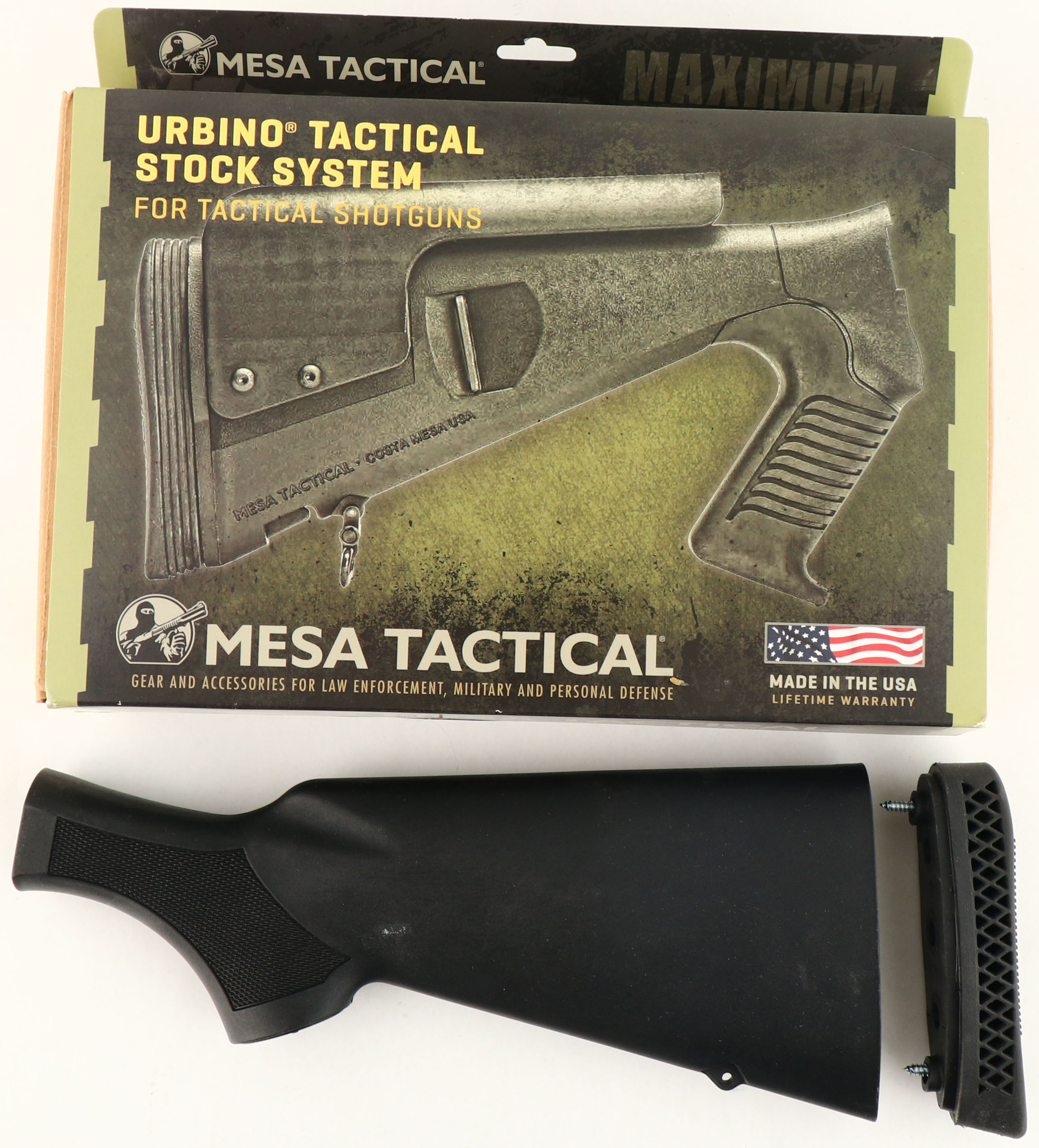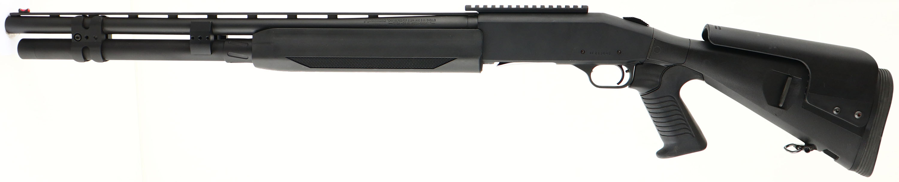 Mossberg, Model 930 Jerry Miculek Pro Series Tactical Class, CAL: 12 GA, MFG: Modern, SN:AF213042, Pump Action Shotgun, 2 3/4 & 3'', ACCU-Choke, 24'' ventilated rib barrel. In the world of competitive shooting, the name Jerry Miculek is synonymous with record-breaking success. A highly-accomplished shooter & five-time USPSA 3-Gun National Championship winner. Built to Jerry Miculeks specifications. The stock has been upgraded to a Urbino Mesa Tactical synthetic stock, with Santoprene rubber pistol grip, is excellent. The stock has a solid rubber Limb Saver recoil pad (LOP 12.5''), Benelli style sling loop bar on both sides, adjustable cheek riser & sling loop. The factory checkered synthetic forend is excellent, The original metal matte black finishes are excellent, rating 99% overall. Bore is excellent. 9-Round extended magazine tube. Beveled loading gate. Oversized bolt handle & bolt release. Dual gas system offers lighter recoil & easier cycling. Red fiber optic front sight. 6'' picatinny rail on top of receiver & 1 1/2'' rail on the right side of barrel & mag tube. Comes with original Urbino stock box, which carries the original factory take-off stock. Overall excellent. FFL Req. - Value: 600 to 900