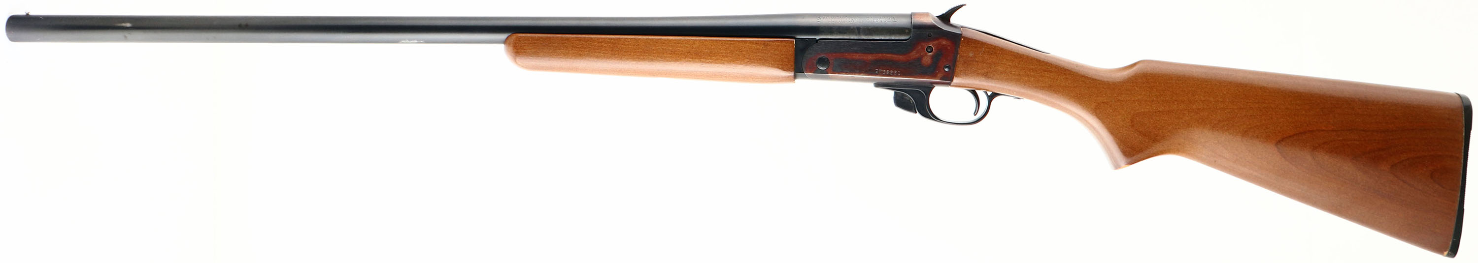 Stevens (Savage), Model 9478, CAL: 12 ga., MFG: Modern, SN: E738231, Break Action Single Shot Shotgun, 2 3/4'' & 3'', Choke: Full, 28 1/8'' barrel. The flat pistol grip wood stocks are excellent, with a couple of minor contusions to the excellent original finish. The metal blue finish on the barrel rates 98%on the barrel, 60% on the receiver, with loss on the receiver due to an unusual toning red of the finish on the left side. Bore is excellent. Silver bead front sight. Original plastic buttplate. LOP 14''. FFL Req. - Value: 150 to 250