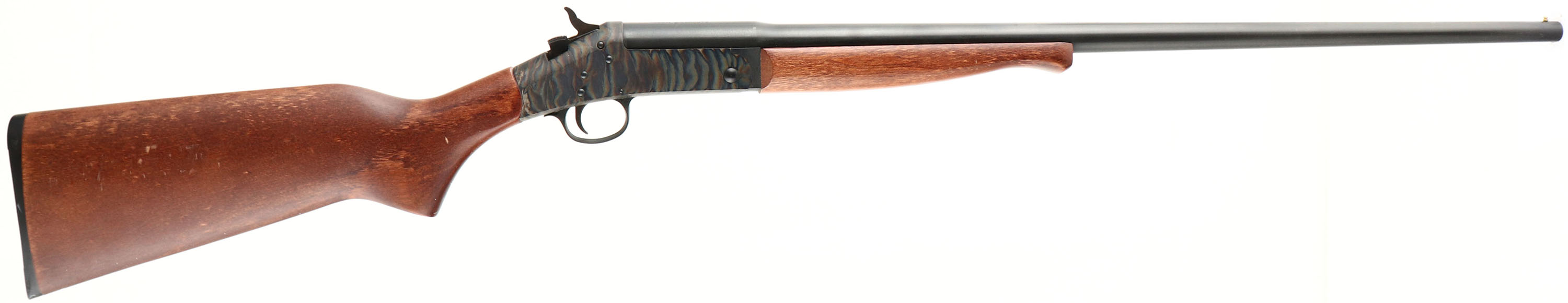 New England Firearms, Model Pardner, CAL: 410 ga., MFG: Modern, SN: NN250110, Break Action Single Shot Shotgun, 3'', Choke: Full, 25 1/2'' barrel. The flat pistol grip wood stocks are excellent, with minor scrapes, dings & speckles to the original finish. The metal blue finish on the barrel rates 95%. The case-hardened frame retains excellent case-colors. Bore is excellent. Brass bead front sight. Original plastic buttplate. LOP 14 1/8''. FFL Req. - Value: 150 to 250