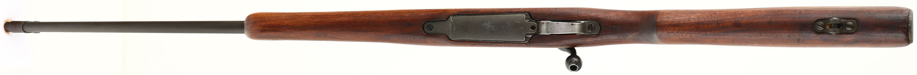 Eddystone, Model: M1917 Enfield, Cal: .30-06, MFG: May 1918 Receiver, Jan 1918 Barrel, S/N: 578832, Bolt action rifle, 26'' barrel. The semi-pistol grip walnut stock is very good as being cut down & upper hand guard missing. Stock has light nicks, dings, scratches & wear from use/age. The bottom of the wrist is marked with a faded ''P'' in square firing proof, & faint remains of a older stamp. The left side of the wrist is marked with ''S.A.A.'' in box, ''S'' in box, cartouches. The parkerized metal finish rates 80% overall with scratches & spots of thinning/wear. Left side of the receiver is marked with the US Flaming bomb acceptance stamp. The receiver band is marked ''U.S.'', ''MODEL OF 1917'', ''EDDYSTONE'', & the S/N. the rear of the barrel is marked with a flaming bomb stamp & three eagle proof stamps. The front of the barrel is marked ''E'', Flaming bomb, 1-18. has a Remington marked bolt handle with Eddystone components, the rest of marked parts are mostly Eddystone with a Winchester rear sight ladder. The bore is very good. Its bright with light roughness. Five groove rifling. The barrel holds a square blade front sight with protective ears. Receiver mounted flip up ladder, aperture rear sight, ladder marked 2 to 16. the stock carries a parkerized steel trapdoor buttplate. Nothing inside trapdoor. Rear sling swivel removed, still has base mount. FFL or C&R Req. - Value: 200 to 500