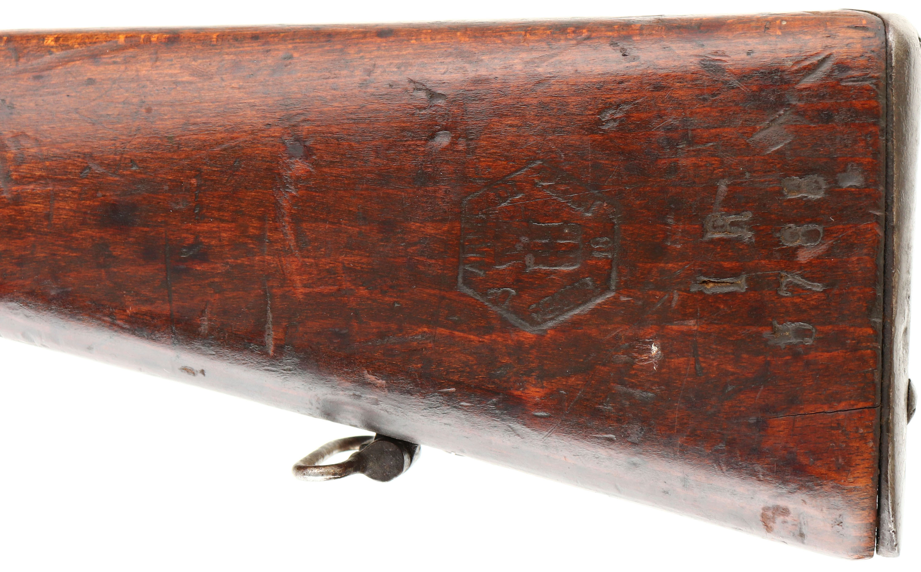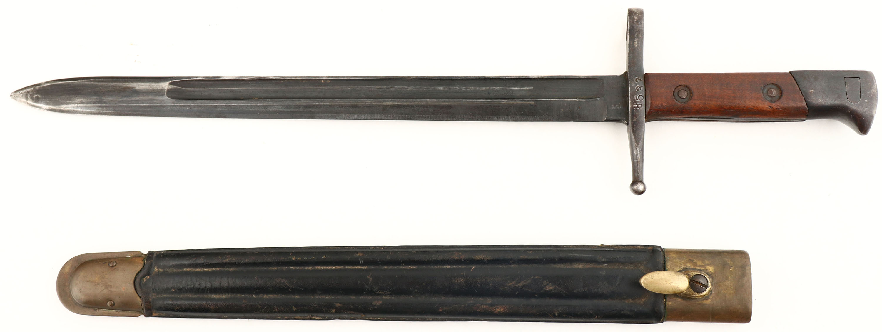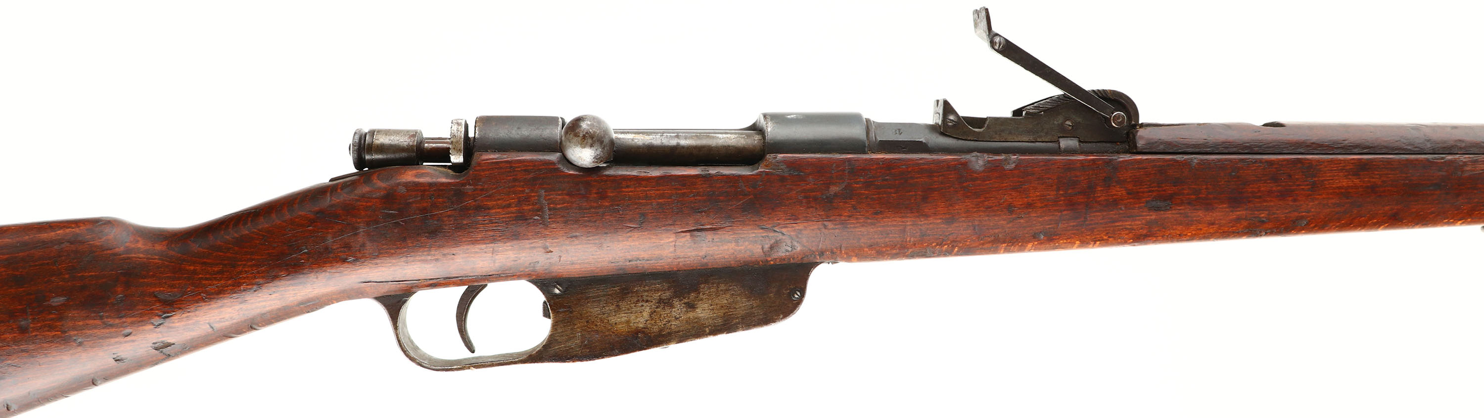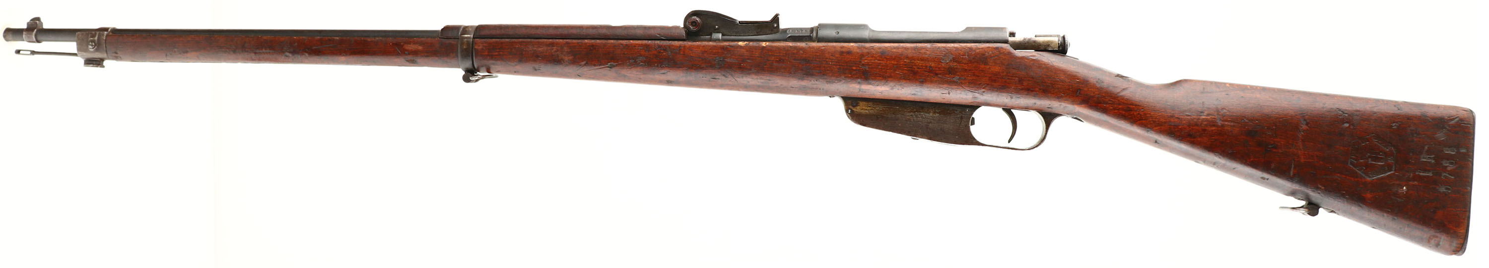R.E. Terni, M1891 Carcano infantry rifle, Cal: 6.5x52mm Carcano, MFG: 1918, S/N: IR3788, Bolt action rifle, 30 5/8'' barrel. The straight wrist walnut stock is very good with numerus nicks, dings, & scratches from use/age. The left cheek of the stock is marked with a faded Terni Arsenal military acceptance stamp with the date ''18'' (1918), & its marked with the S/N. the blued metal finish on the receiver rates 75% with spots of wear/thinning & brown patina. The barrels finish rates 70% with thinning, brown patina, & light rust speckling. The left side of the receiver is marked with a small proof. The rear of the barrel is marked ''18'', ''Terni'', the S/N, & two small proofs. S/N mismatched bolt. The bore is very good. Its bright with spots of light roughness. The rifling on M91 Carcano (all pre M38) is a unique gain twist style of rifling. Where the twist rate starts slow & speeds up further down the barrel. It was done to help stop early throat erosion on the barrels. The later M38 models would use standard constant rifling as they realized it was a problem with the bullets & powder rather than the rifling. The barrel holds a tall barleycorn front sight with a tangent, deep V-notch rear sight marked 6 to 20. the stock carries a steel buttplate that's toned to a brown patina. Rifle has both sling swivels & has a cleaning rod. Rifle also comes with the correct m1891 Bayonet with sheath. Bayonet is S/N: 8537. a nice all original configuration Carcano long rifle. FFL or C&R Req. - Value: 250 to 500