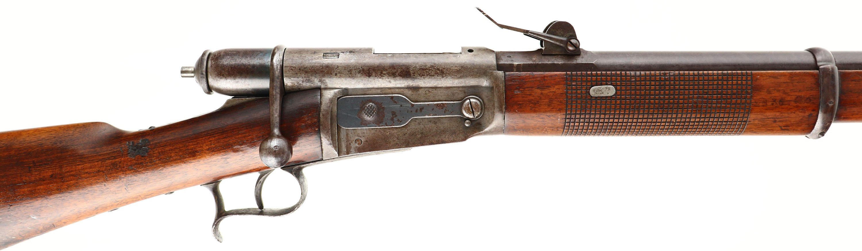 Valentin Sauerbrey, Basel Switzerland, Model: M1869 Vetterli, Cal: 10.4 x 38mmR (.41 RF Swiss), MFG: 1896-70, S/N: 2036, bolt action rifle, 33 1/8'' barrel.