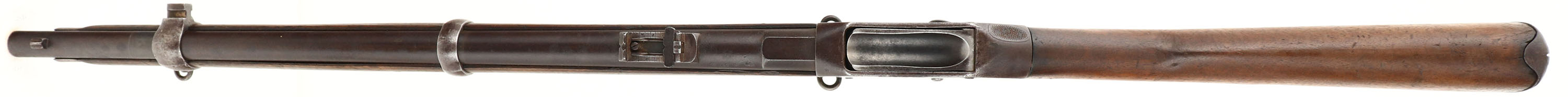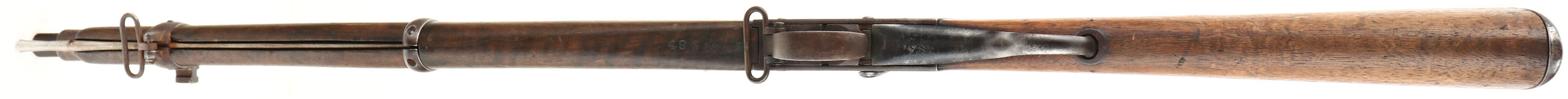CONDITION: The straight wrist wood stock is very good with a few small nicks, dings, & scratches. The buttstock appears to have a old light sand & re-finish job done to it. Its toned a different color than forend & the metal is proud to the wood around the wrist & buttplate; but the wood still shows aged patina. Small chip repair on the left side of forend, next to the forend cap. The right side of the forend, just ahead of the receiver is marked with a small backwards ''R'' & normal ''R'' cartouche, & a very worn crown marking that appears to read, crown over ''BF'' over ''80''. The bottom of forend, just ahead of the receiver has worn markings that read ''48'', ''3'', ''2'', ''51'', the ''2'' stamp is in the font normally found on British military rifles of the era. The metal has toned to a chocolate brown patina with areas of roughness. The right side of the receiver is marked ''BPB 1671''. The top of the receiver is marked with a small British proof. The left side of the barrel is marked with three British commercial proofs & ''52''. The bore is fair. It has roughness & pitting. The barrel holds a barleycorn front sight, & a stepped base/ladder, V-notch rear sight. The base is marked 100 to 300, & the ladder is marked 4 to 10. The stock carries a steel buttplate, mix of brown patina & gun metal gray. Rifle has both sling loops & cleaning/clearing rod. Antique, no FFL Req - Value: 800 to 1200