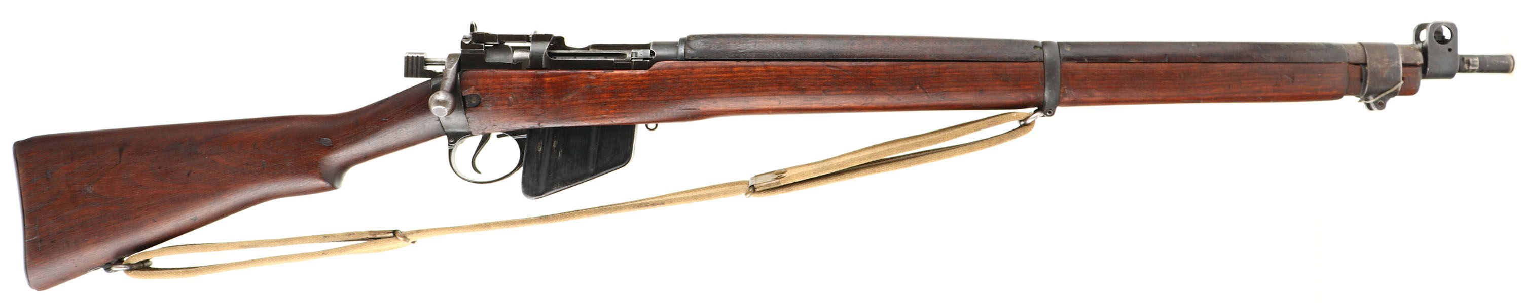 HISTORY: Savage built No.4 Mk.1 SMLE rifle for Britan under the lend lease act. They were actually built by Stevens which was a division of savage at the time. They made over 1 million No.4 rifles during WW2. they would have a big ''UNITED STATES PROPERTY'' mark on the top of the receiver, that was obliterated on this rifle after it was refurbished at Maltby during or after WW2.