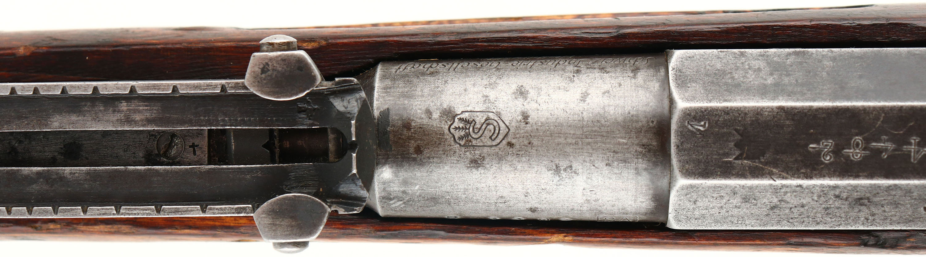 CONDITION: The straight wrist, artic birch stock is very good with nicks, dings, chips, scuffs, & wear from use/age. Small chips by the rear rivets on the upper handguard. Stock has a toe replacement, either done when it was refurbished into a M24, or later arsenal repair. Has the period correct rounded finger splice joints. The metal is mostly worn gray with areas toned brown on the receiver & brown patina speckling. The left side of the receiver is marked with the S/N. the top of the receiver band is marked with a half faded M, a buffed/worn Imperial Russian eagle, & the lined-out number 24482. Left side of the barrel is marked with the S/N, & the SA in box, Finnish army property mark. Top of the barrel is marked with the Civil Guard crest of an S topped with three fir sprigs in a shield. The right side of the barrel is marked Schweiz-Industrie Gesellschaft, Neuhausen. The bottom of the receiver tang is marked with a very faint Tula hammer, no mfg. mark visible. Has a S/N forced matched bolt; all bolt parts marked with Izhevsk stamps. Other parts are of mix of MFGs, very common on Finnish Mosins. The bore is good. Its bright with constant light roughness throughout & lightly thinned rifling. Has been counter bored. The barrel holds a notched barleycorn front sight with a Konovalov V-notch rear sight. The arshins sight markings on the left side of the base have been crossed out, with new sight markings in meters on the right side, also a 200-meter notch was added to the base by the fins. This sight marking change Is seen on practically all Finnish Mosins. The stock carries a steel buttplate, worn gray. Stock has the Russian sling wells with Finnish sling bars. Rifle has a cleaning rod. A good example of a well-worn/used, but still perfectly functional Finn Mosin. FFL or C&R Req - Value: 500 to 1000
