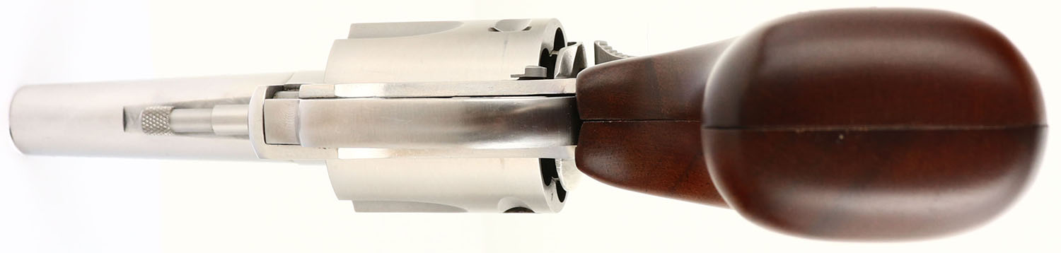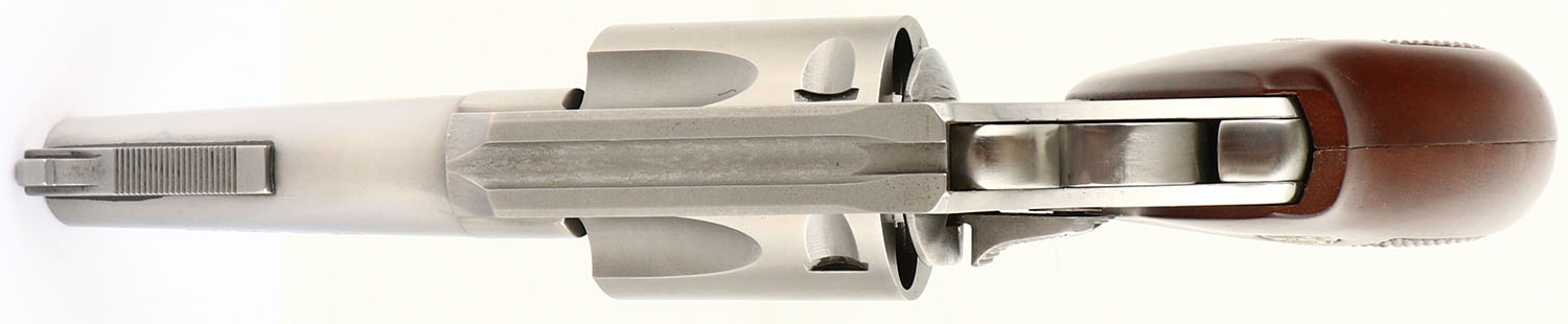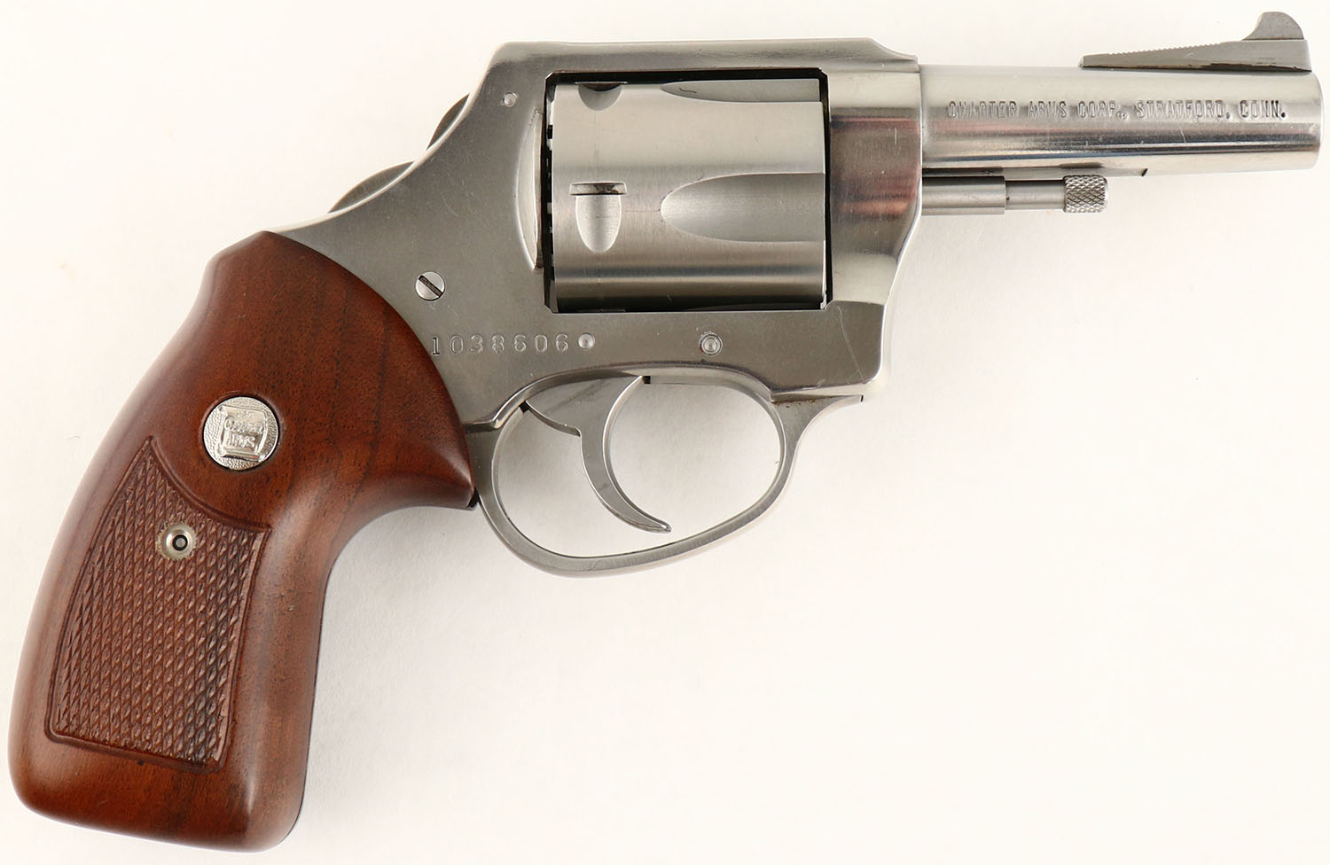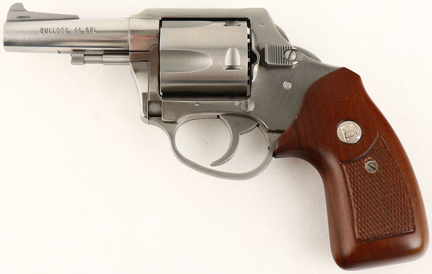 BOXED, Charter Arms Corp., Bulldog, CAL: 44SPL, MFG: 1980's, SN: 1038606, Double Action Revolver, 3'' barrel. The logo medallion checkered wood grips are excellent. The stainless steel finish is excellent overall. There are numerous thin brush lines, consistent with stainless finishes. Bore is excellent. Integral square notch rear sight & ramp elevated blade front sight. Comes in factory box, with related paperwork. FFL Req. - Value: 100 to 250