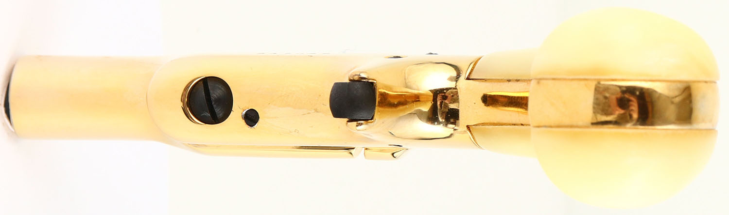 BOXED, Butler, Derringer, CAL: 22 SHORT, MFG: Modern, SN: B47048, Single Action Pistol, 2 3/8'' barrel. The faux pearl grips are excellent. The high polish gold tone finish rates 99% overall, with minor speckling on the left side of the barrel. Bore is very good. Blade front sight. Comes in factory box. FFL Req. - Value: 50 to 150