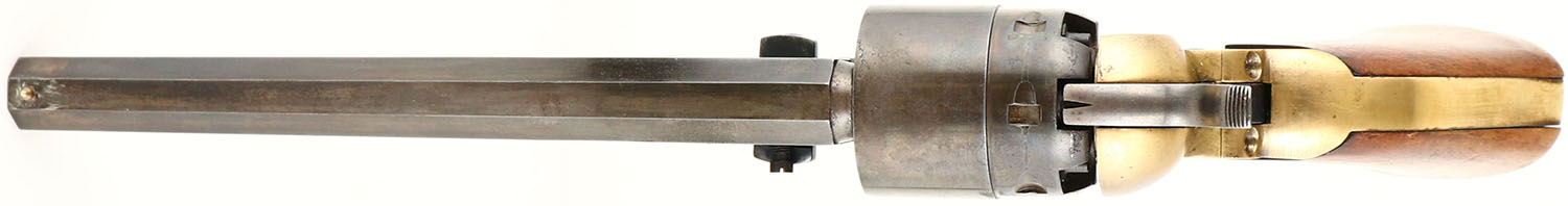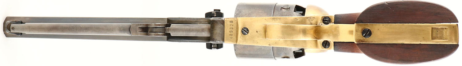 F.LLI Pietta, Model 1851 Confederate Navy, CAL: 44, MFG: N/A, SN: 489328, Single Shot Percussion Muzzleloader, 7 3/8'' barrel. The wood grips are excellent, having been lightly sanded, with added finish. There are numerous light scrapes throughout. The metal blue finish has worn to a mix of metal gray, thin brown patina & remaining finish. Bore is good, consistently rough, with intermittent light pitting. Rear notch sight on the tip of the hammer & small brass cone front sight. Nipple condition is very good. Black powder, No FFL Req. - Value: 150 to 250