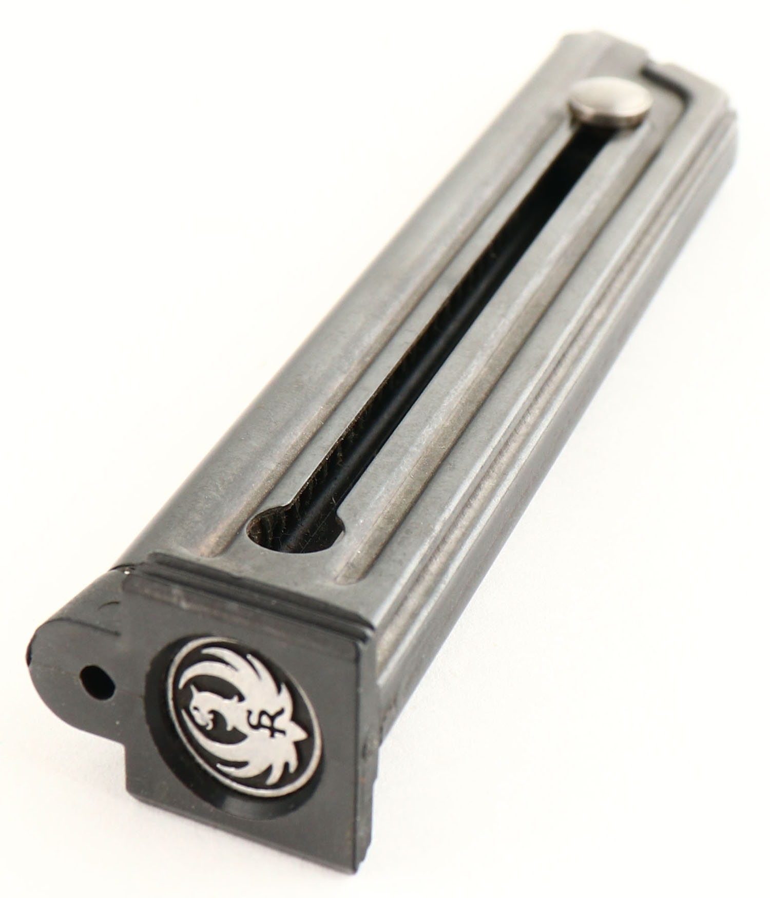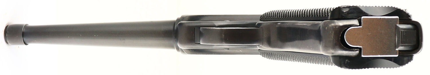 Ruger, Standard, CAL: 22LR, MFG: 1974, SN: 12-65358, Semi Auto Pistol, 6'' barrel. The Ruger logo medallion checkered plastic grips are excellent. There are only a couple minor dings to the checkering. The metal blue finish rates 90% overall, with concentrated wear to the straps & holster wear. Bore is excellent, with visible light wear from use. Standard fixed sights. Comes with an extra Ruger magazine. FFL or C&R Req. - Value: 150 to 350