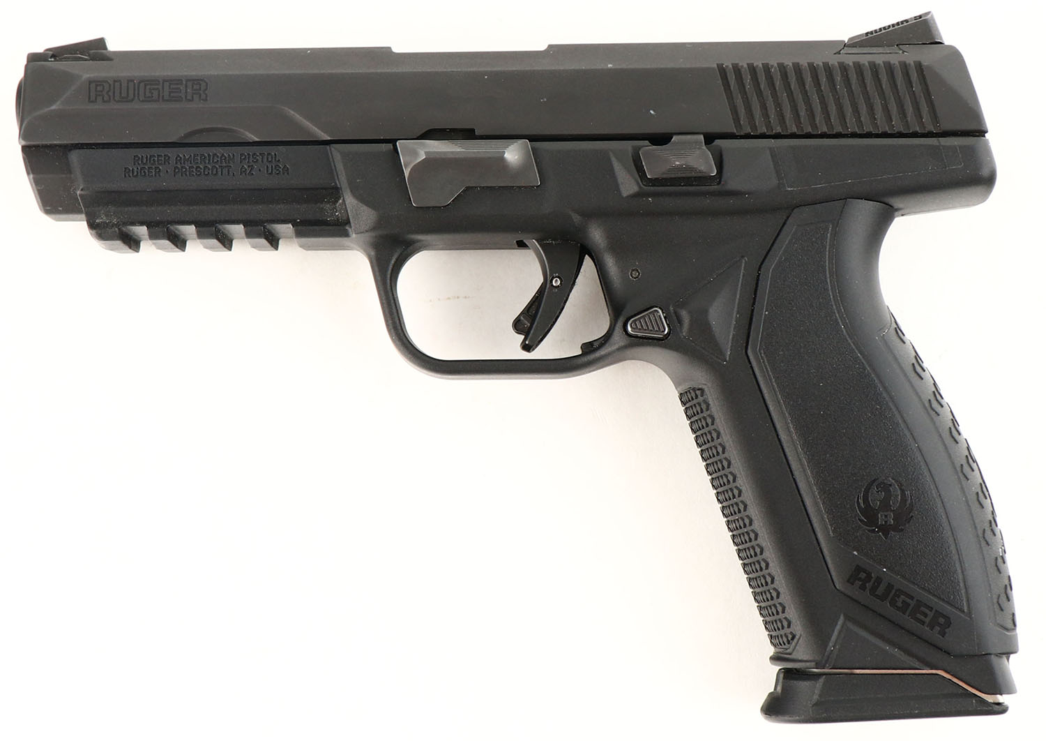 CASED, Ruger, American Pistol - Pro Duty, CAL: 45 AUTO, MFG: Modern, SN: 861-50517, Semi Auto Pistol, 4 1/2'' barrel. The textured polymer grip frame is excellent. The Black Nitride finish on the slide rates 99%. Bore is excellent. Novak's contrast sights. Comes in factory hard case, with two extra mags, grip panels & related paperwork. FFL Req. - Value: 400 to 600
