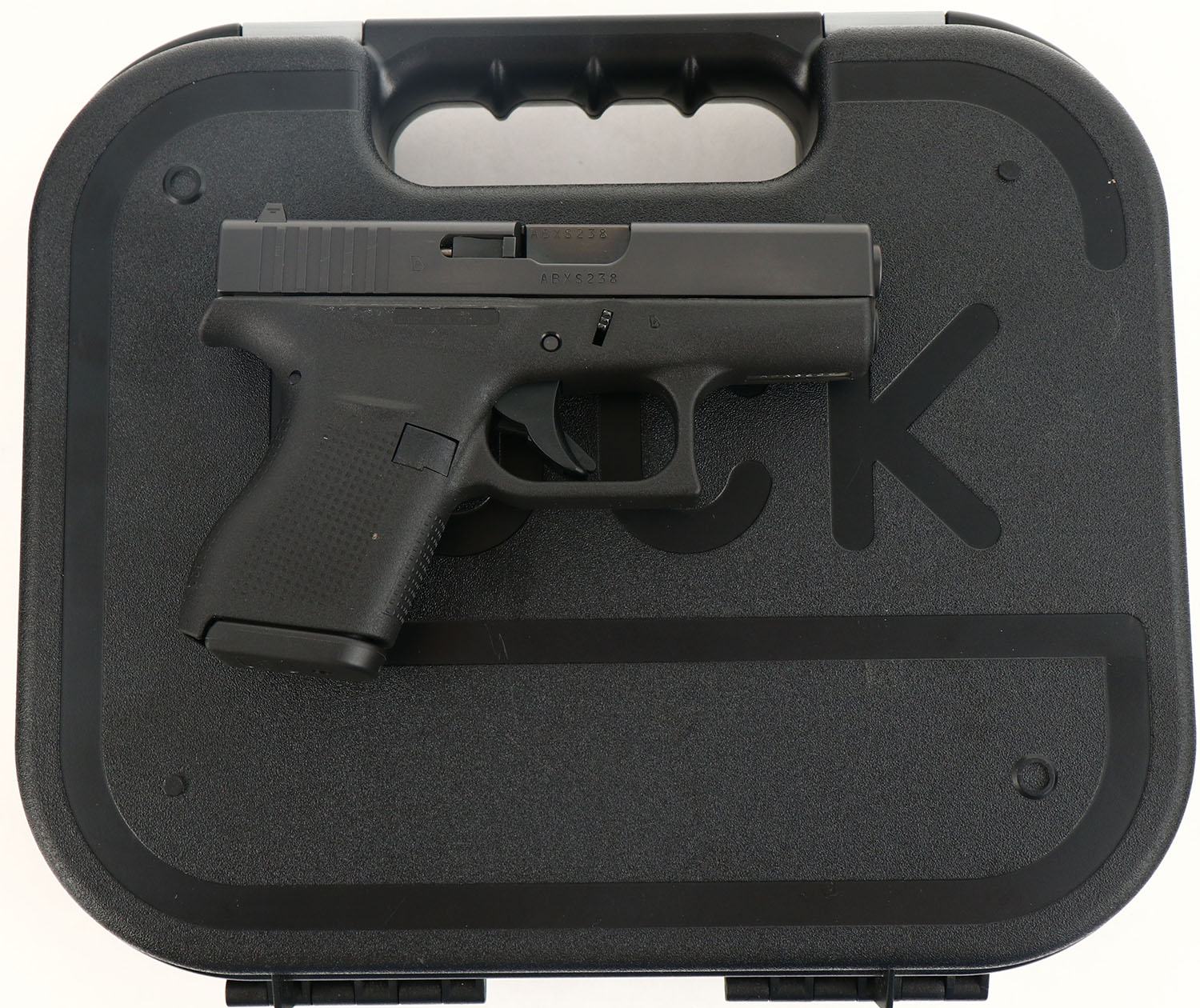 CASED, Glock, Model 42 Gen 4, CAL: .380 Auto, MFG: Modern, SN: ABXS238, Semi Auto Pistol, 3 1/8'' barrel. The less aggressive RTF-4 frame is excellent. The matte black finish on the slide rates 99%+. Bore is excellent. Factory contrast sights. Comes in factory hard case, with owners manual, extra mag & cleaning rod/brush. FFL Req. - Value: 300 to 450