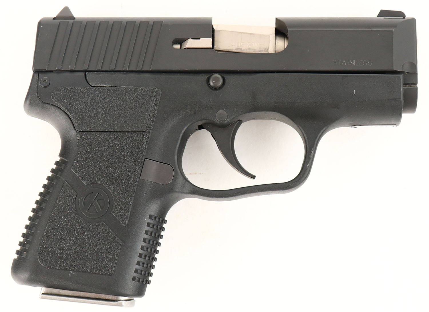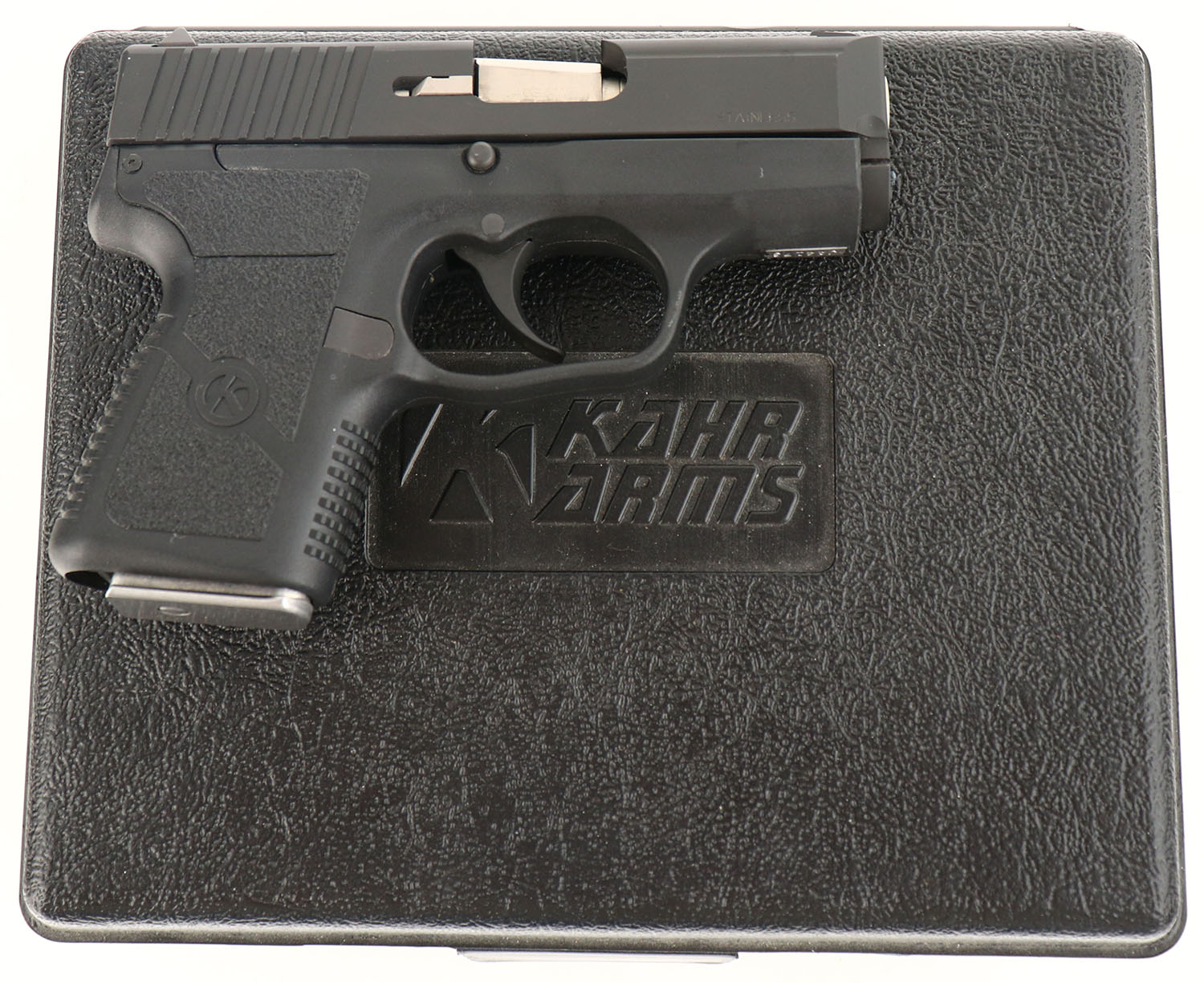 CASED, Kahr Arms, PA40, CAL: 40 S&W, MFG: Modern, SN: JA4173, Semi Auto Pistol, 3'' barrel. The textured synthetic grip frame is excellent. The Diamond Black finish on the slide is excellent, with some minor handling marks. Bore is excellent. Factory contrast sights. Comes in factory hard case, with related paperwork, extra mag & trigger lock. FFL Req. - Value: 300 to 600