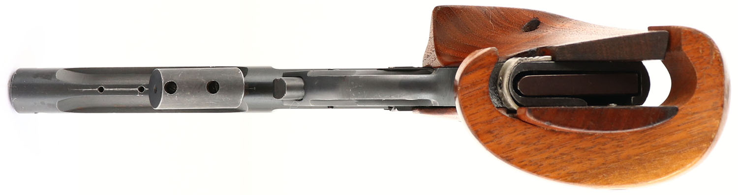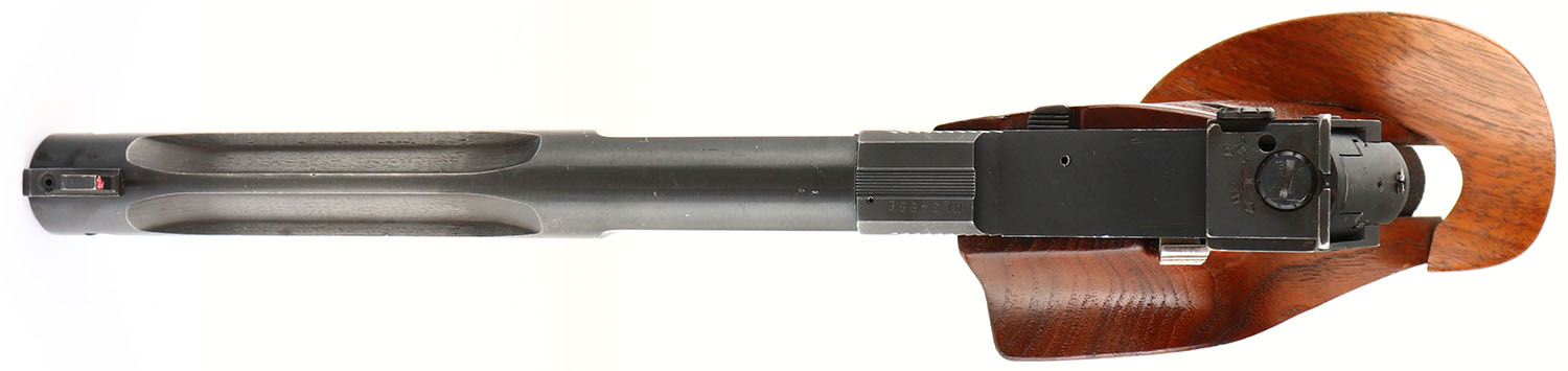 High Standard, Supermatic Citation - ML Series, CAL: 22LR, MFG: 1978, SN: ML34888, Semi Auto Pistol, 7 1/4'' barrel. The oversized & adjustable wood target grips are excellent. There are scuffs & contusions to the finish. The original metal blue finish on the fluted barrel rates 80%, with areas of cleaned rust staining, toned to a brown/red patina. The frame rates 90%, with handling marks & wear to sharp edges. Bore is excellent. Fully adjustable rear sight & tall blade front sight. FFL Req. - Value: 300 to 600