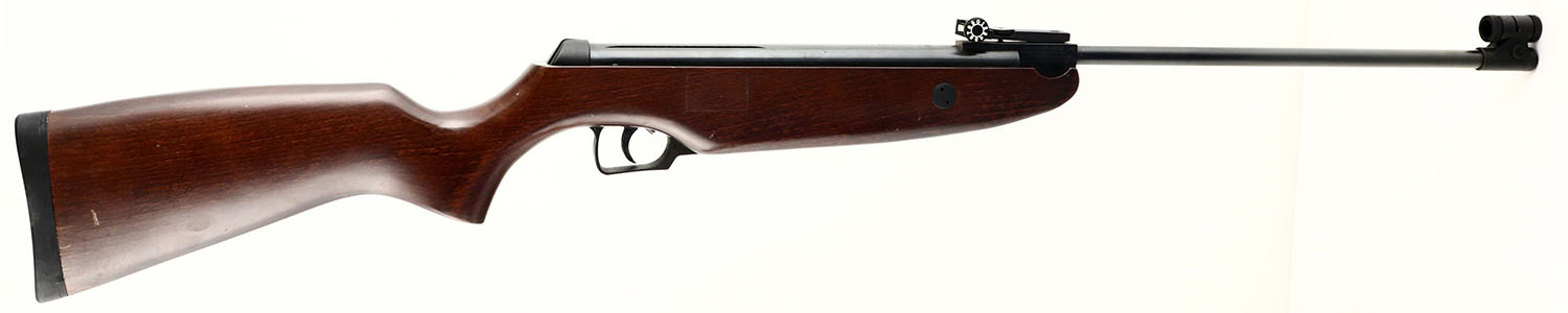 Beeman 0035 in .177 Pellet Rifle with barrel break. Firearms condition grades as follows: The wood stock is excellent. The metal is 90% with a few small rust spots. Adjustable rear sight & hooded front sight. This pellet rifle is believed to be in good operating condition. Grade: Excellent - Value: 20 to 60