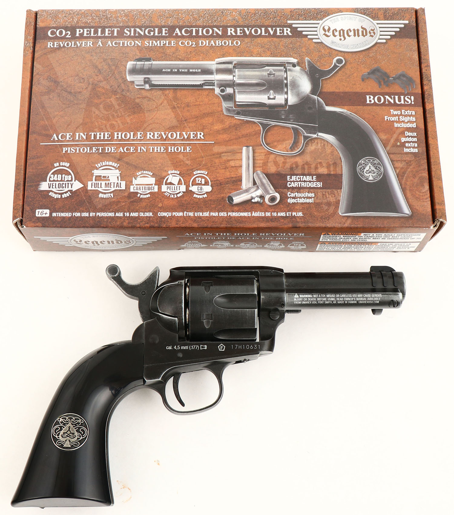 BOXED, Umarex Air Guns, Model Legend Single Action Revolver, Caliber 177, Single action, 3.25'' barrel, synthetic grip. Grade: Excellent ++ - Value: 50 to 150