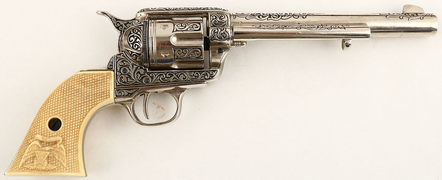 | MOVIE PROP Colt 1873 SAA, has been engraved, has wood display ca...