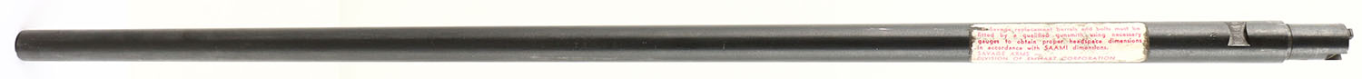 Coast to Coast, 24 inch standard barrel for Model 285A, .22 Short/Long/Long Rifle, bluing is excellent, very minor handling wear, Savage Arms sticker is intact, rifling is excellent with strong rifling. Grade: Excellent + - Value: 2 to 100