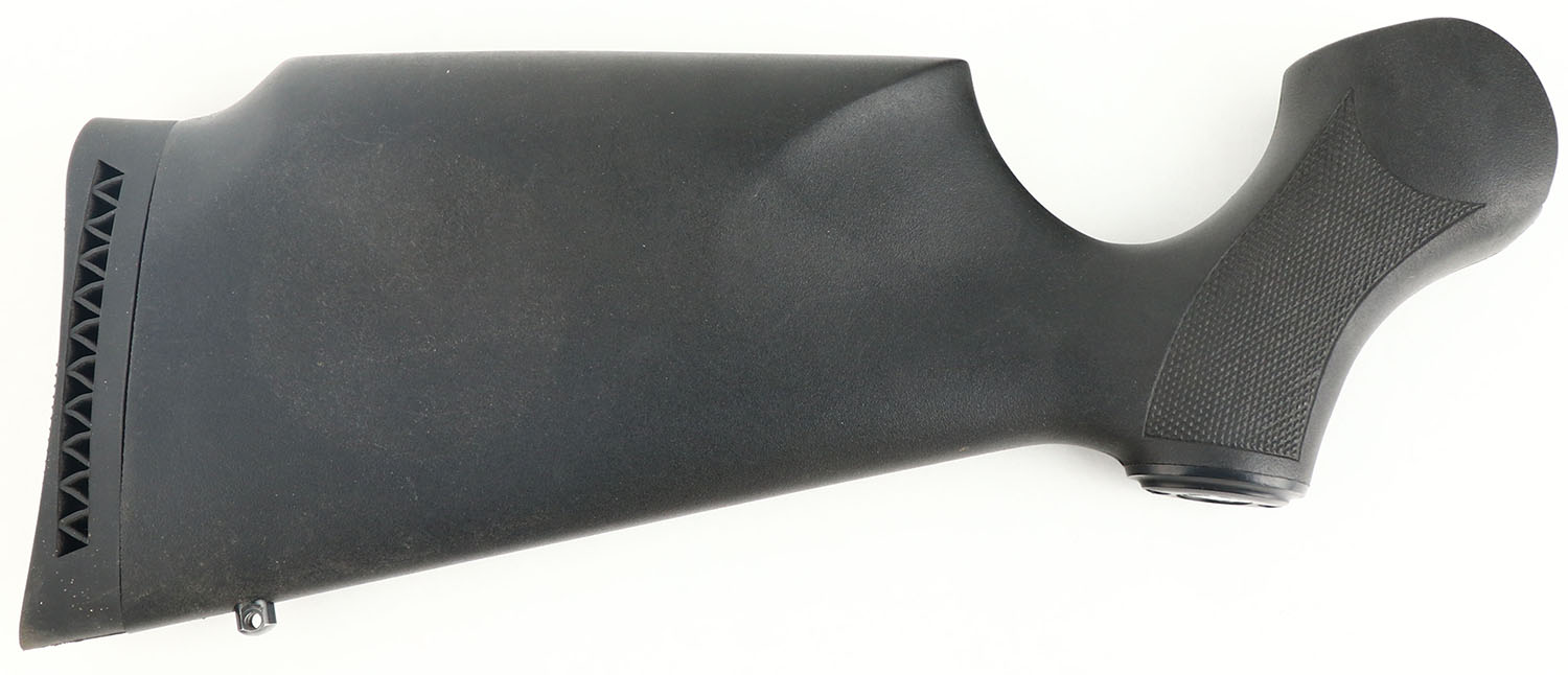 NEW Thompson Center G2 Contender factory rifle stock, Checkered & TC capped pistol grip synthetic stock. Factory TC ventilated recoil pad. Few handling blemishes. Sling stud. Attachment bolt in pistol grip. Closed gun store inventory. Grade excellent - Value: 50 to 110