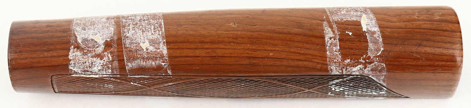 Winchester Model 20 forend 12 ga. shotgun. Take-off. Factory press checkering walnut & factory finish. Minor handling blemishes & light smoothing of checkering. Masking tape residue will clean up. Grade Very Good - Value: 10 to 30