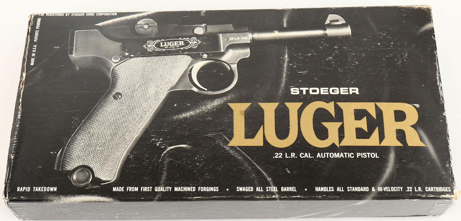 BOX ONLY: Stoeger, Luger, .22 Long Rifle Automatic Pistol, box is solid with excellent color, shelf wear, some edge & corner wear. Grade: Very Good - Value: 6 to 30
