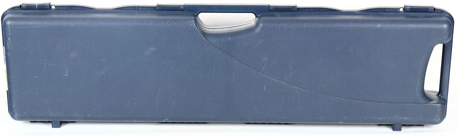 Berretta factory shotgun case, no marked model, molded plastic interior, measures 38'' x 10'' x 3''. Grade: Excellent - Value: 30 to 100