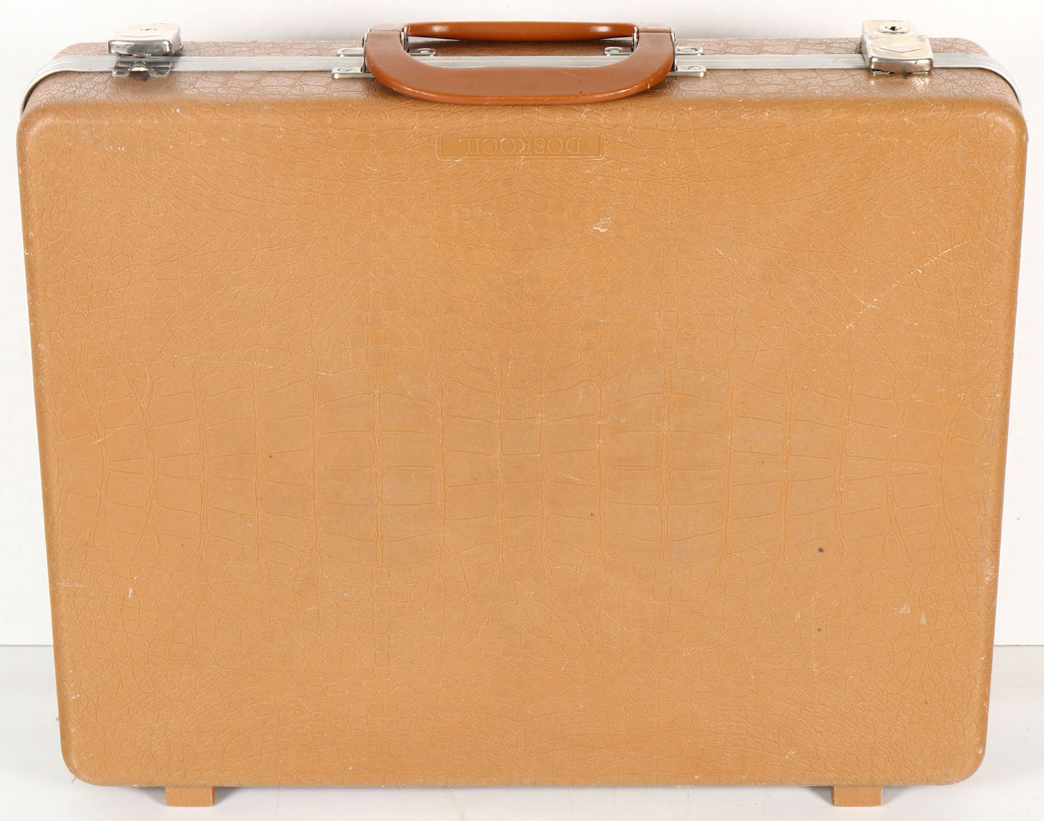 Doskocil, Vintage brown plastic gun case, has locking latches but no keys, egg carton foam interior, measures 18'' x 14'' x 4''. Grade: Excellent - Value: 10 to 50