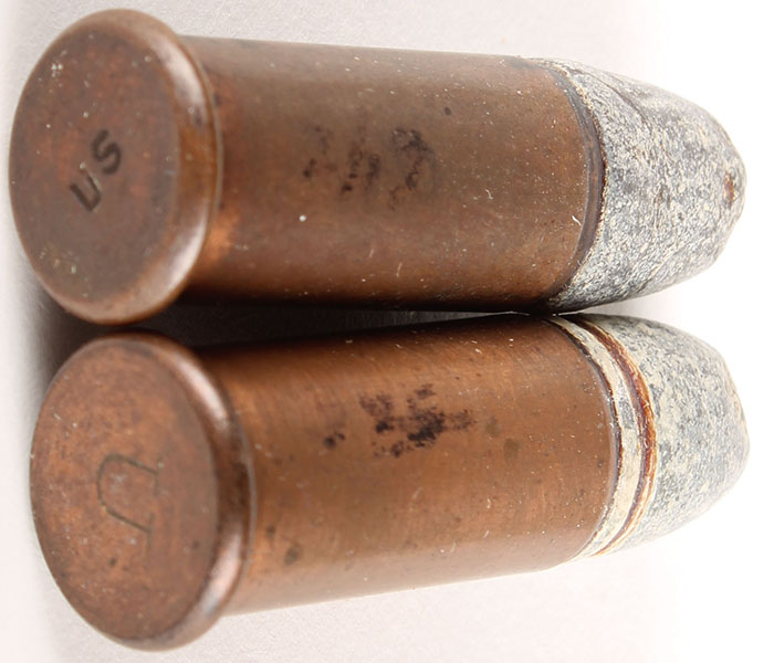 Lot of 2. .44 Henry LC. (1) HS:''US'' impressed. (1) HS:''U'' impressed. Both FN Lead. Grade: Very Good - Value: 30 to 60