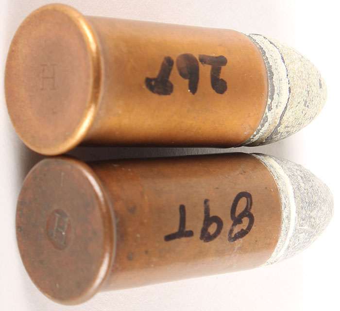 Lot of 2. 56-52 Spencer Rimfire. (1) HS:''H raised'', FN Lead. (1) HS:''H impressed'', FN Lead. Grade: Very Good - Value: 30 to 60