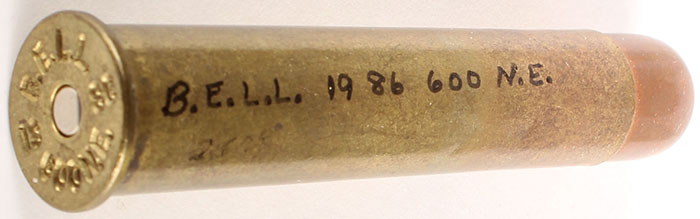 600 Nitro. HS:''BELL 86 600 N.E. 19''. RN CJ FMJ. Grade: Very Good - Value: 30 to 60