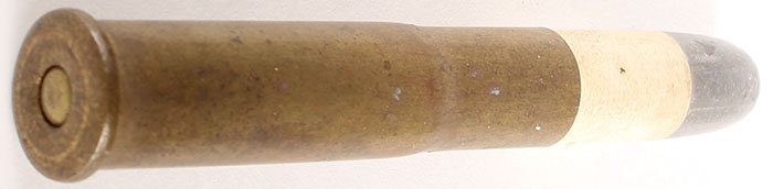 44-90 Sharps & Remington bottleneck (2.25'' case). NHS. RN PP Lead. Appears to be loaded with the 500 grain bullet. Grade: Very Good - Value: 20 to 40