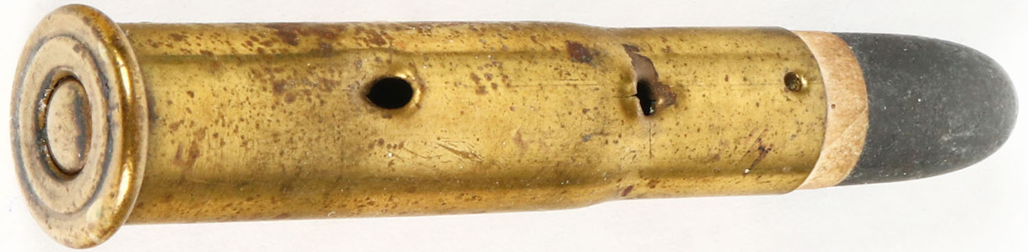 44-77 Sharps (2.25'' case), HS:''* *'' by UMC. Board Dummy w/ 2 mounting holes. RN PP Lead. Grade: Very Good - Value: 20 to 40