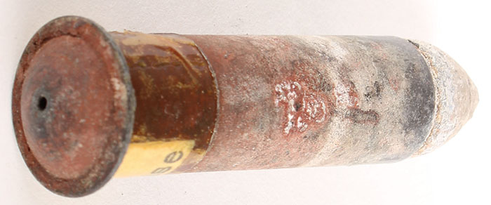 58 Requa-Billingshurst. NHS. PT Lead. Uses a Hotchkiss Patent paper cartridges. For the multi-barrel bridge defense gun. Grade Excellent - Value: 40 to 80