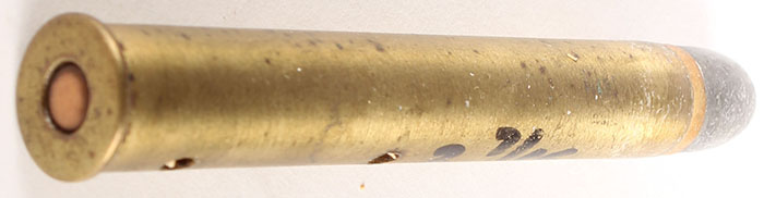 360x2.4'' Express, HS:''ELEY 360 LONDON'', RN PP Lead with copper tube, Dummy with 2 holes in case and wood or fiber in case. See Flemming pg 66. Grade: Very Good - Value: 50 to 90