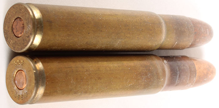 Lot of 2. 505 Gibbs Magnum. HS:''GIBBS .505'', (1) RN CJ FMJ. (1) RN CJ SP. Very Good + - Value: 20 to 40