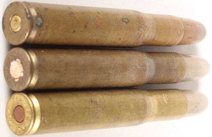 Lot of 3, 404 Jeffreys. (1) HS:''JEFFERY C .404 K'', RN CN SP. (1) HS:''KYNOCH .404'', RN CJ FMJ, snapped primer. (1) HS:''KYNOCH .404 NITRO'', RN CN SP. Grade: Good - Value: 10 to 40