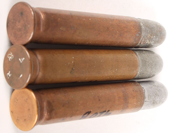 Lot of 3. .45-70 Springfield. Benet Primed. HS: R 82 F 1, R 82 F 4, R 81 F 6'', 500 grain RN Lead. Grade: Very Good - Value: 30 to 60
