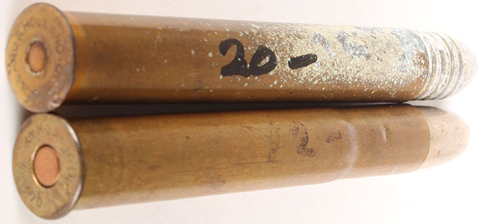 Lot of 2. (1) .470 Nitro. HS:''KYNOCH NITRO .470'', RN CN FMJ. (2) .500 Express. HS:'':''HOLLAND & HOLLAND .500'', (1) RN Lead with copper tube. Grade: Very Good - Value: 16 to 60
