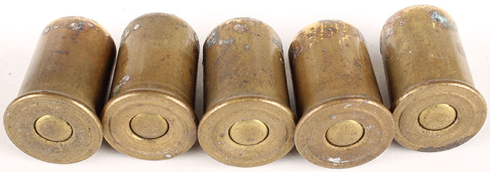 | Lot of 5. 50 Pistol. NHS. Tan wad at casemouth. Grade: Very...