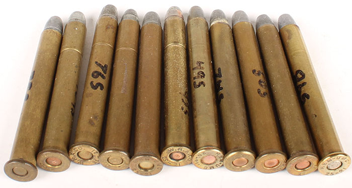 Lot of 11. 25-21 Stevens. Various loadings by UMC, REM-UMC, Peters & Winchester. One is mis-headstamped ''UMC 25-25''. See Photo. Grade: Very Good - Value: 20 to 40