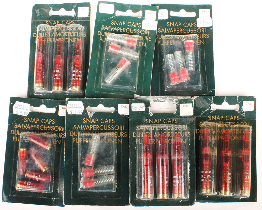 Lot of 23 Snap Caps. (9) 7X6.5 R, (5) 10mm SA, (3) 30-06 Spring, (3)243 WIN, (3) 270 WIN. Grade: New - Value: 10 to 50