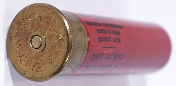 | ELEY-KYNOCH No. 4ga, 3 3/4'' OAL. Loaded red paper case with p...