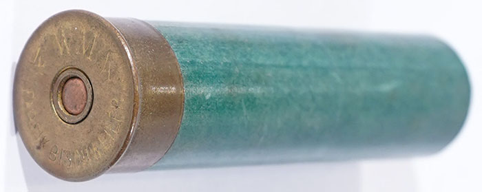 | WM No. 4 Fabrik Bischweiler, 4ga, NPE green paper shot shell, 4...