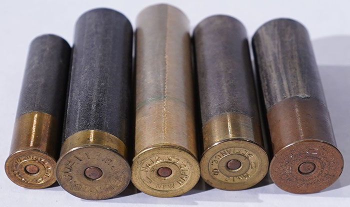 Lot of 5 U.S. Cart. Black paper shot shells, Star, New Rapid, and others. Grade: Excellent - Value: 20 to 100